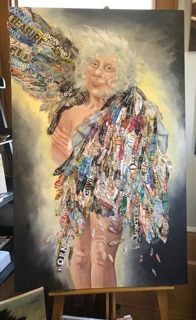 Each Angel is created on a 3' x 4' canvas. Of the 18 I have created, only one was male. All have sold but the last two. "Haven of Hope" is in a children's hospital in Georgia while "Burden of Breast Cancer" found a home in Tennessee with a Susan G. Komen for the Cure group. "Music of Hope" was commissioned with the gentleman's wife's face as the angel.