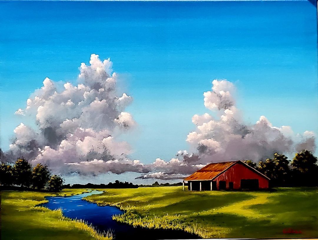 Cris Sell's Fond memories and it is a beautiful day, just like then. Acrylic painting in a black frame. Approx 25″ x 19″ $275 FREE shipping