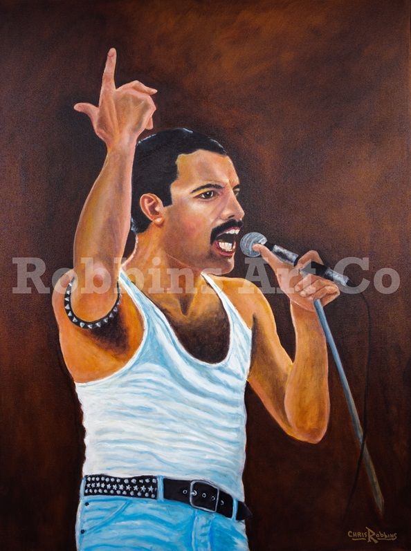 You will go “Ga Ga” over this oil painting of Freddy Mercury in his iconic wife beater t-shirt.30″ x 40″ oil painting with a gallery edge by artist, Chris Robbins. $795 FREE Shipping