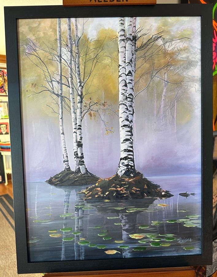 Framed acrylic painting by Deb Weiser. This painting is fresh off the easel. Special Price only until November 1st. 20 x 26 in frame