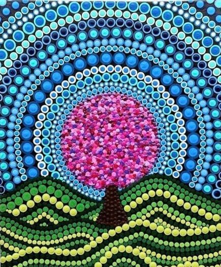 arrange the dots with color theory and balance. Making sure our work will create an image that is pleasing and different. We will put on some calming music and dot dot dot!